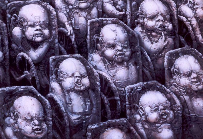 He always felt when he designed the Egg Silo for Alien that the Walls of the Egg Chamber had like Pregnant Bellies that would develop the Eggs.