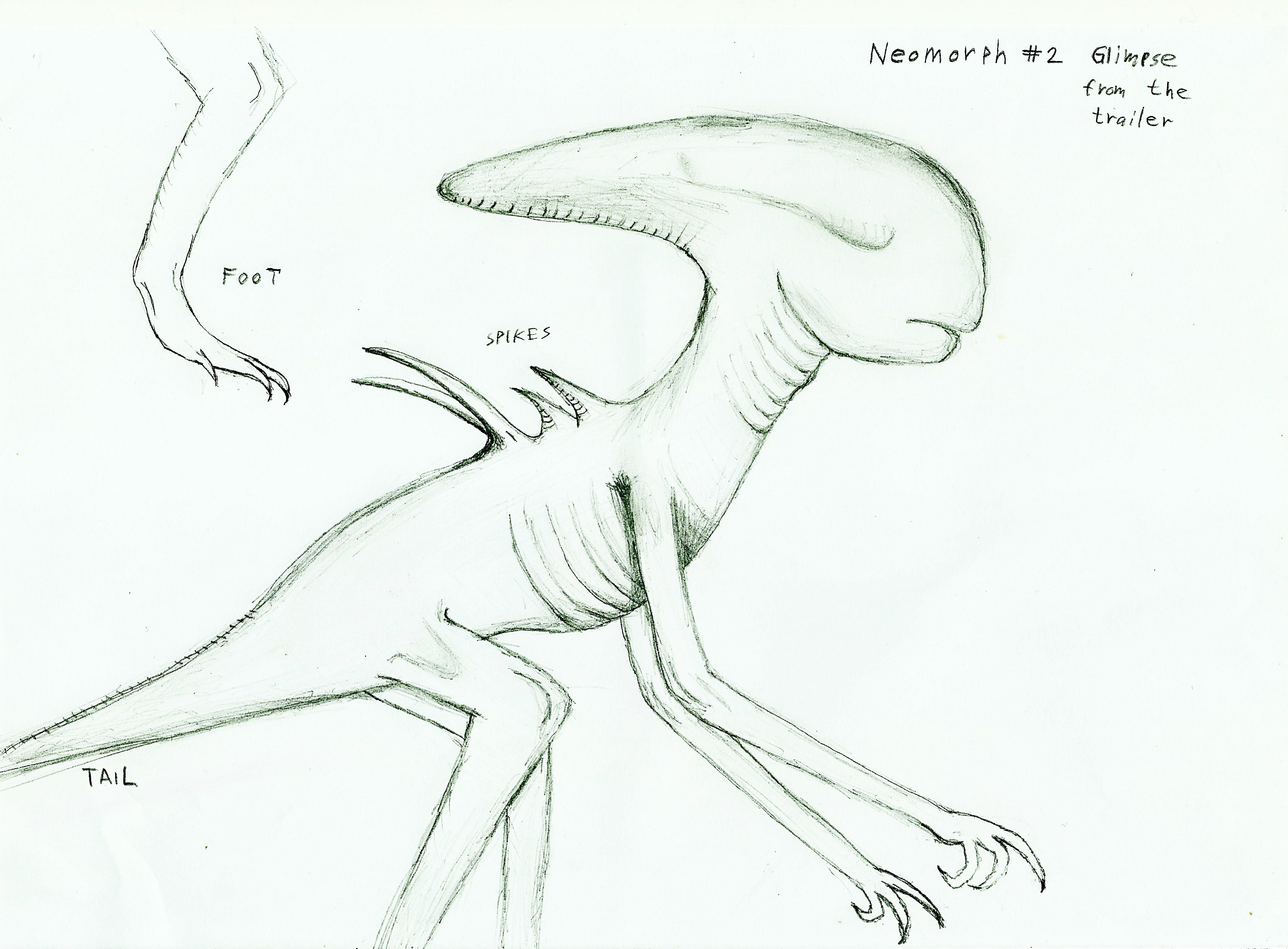 *Finally Matt Scaletti appears in the Shower Scene with Callie Hernandez where the Xenomorph's tail comes from under and behind them.... we get shot of the Xeno head.. and what could be its very large hands with 5 Digits...