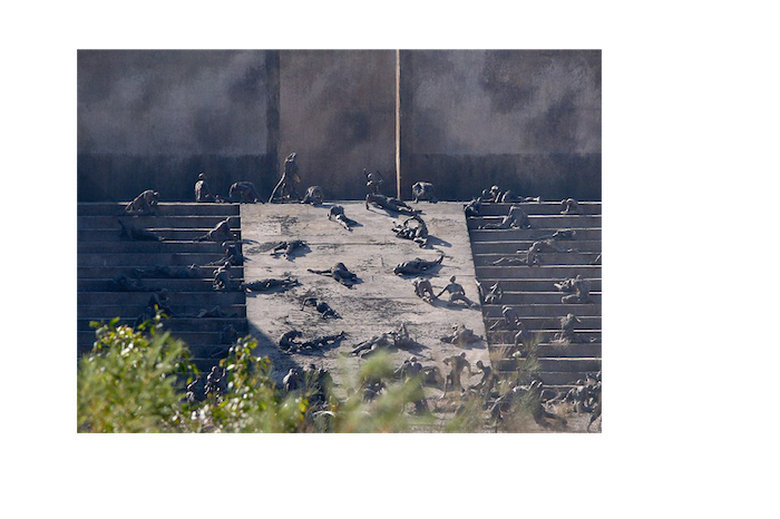 I wonder if those are charred marks on the temple ramp and if so is the other scene a flash back scene?