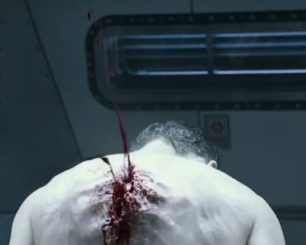 i'm imagining we shall see his entire back violently busted into a bloody mess of bone..muscle...and flesh ......might even be an outpouring of organs! but which will be more disturbing? ....this or the headburst?.....and what would make one more horrifying than the other??