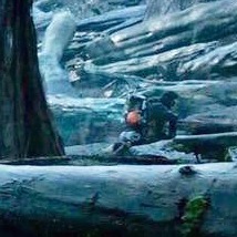 In this area of the picture that I've circled (and also included a zoomed in shot), there is a person that appears to be leaning back against a log they've climbed over with some sort of red object on the back of their kit(maybe?).