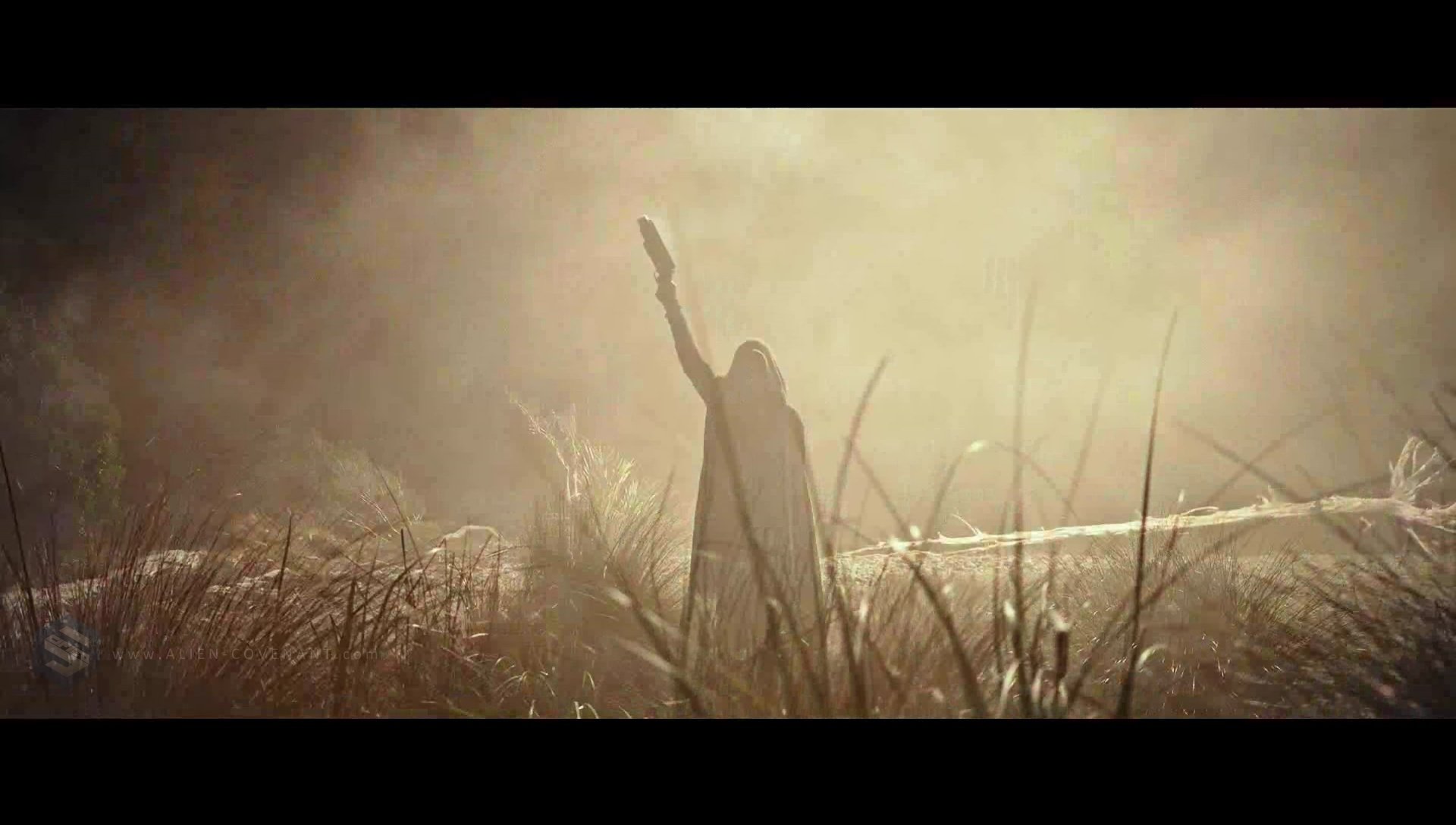 "It’s not clear who this mysterious, cloaked figure is standing in the middle of the wheat field is supposed to be. It could be a member of the Covenant crew. Or, if you’ll allow some irresponsible spitballing inspired by nothing beyond my own penchant for jumping to conclusions, it could be our first look at Elizabeth Shaw, who has perhaps gone full Obi-Wan during her time on this planet."