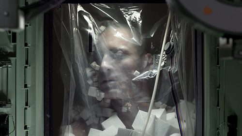 The David and Walter androids also appear wrapped differently (in similar plastic and with styrofoam spacer pads) with David in a plastic box (see below) with folding lid and Walter is woken up with a full head of hair and handed a drink.