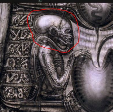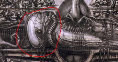 I also just now realized that the humanoid figures in the life cycle mural also have a kind of bubble around their heads as well. Althoguh this could just be the aesthetic Giger was going for when he made it.